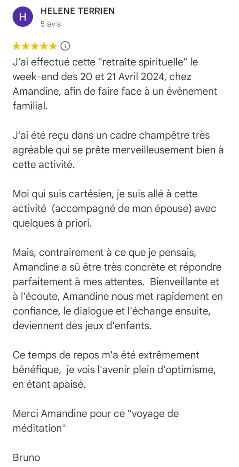 Un week-end individuel sur un lieu à hautes fréquences vibratoires, comprenant :